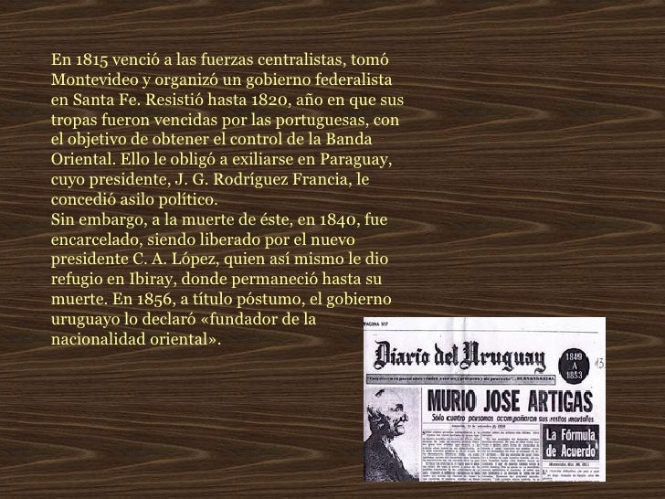En 1815 venció a las fuerzas centralistas, tomó Montevideo y organizó un gobierno federalista en Santa Fe. Resistió hasta 1820, año en que sus tropas fueron vencidas por las portuguesas, con el objetivo de obtener el control de la Banda Oriental.